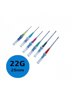 Cathéter court sécurisé à ailettes Introcan Safety 22G 25mm Bleu, BBraun, boîte de 50