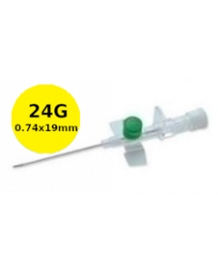 SURFLO®-W Cathéter IV à ailettes et site d’injection, 24G jaune, 0,7x19mm, boîte de 50