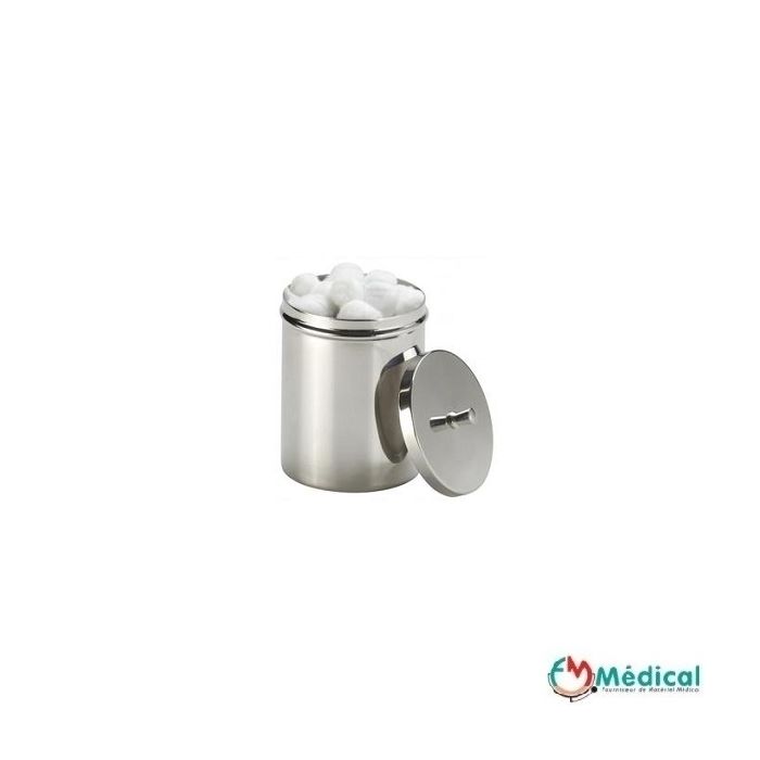 | Product Name | Boîte à coton avec pommeau en inox. Diamètre : 110 mm. Hauteur : 140 mm. |