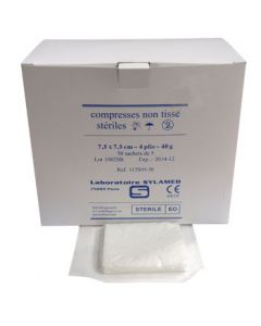 Compresses non-tissé stérile 7.5 cm x 7.5 cm, la boîte de 50 sachets de 2 compresses