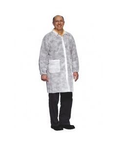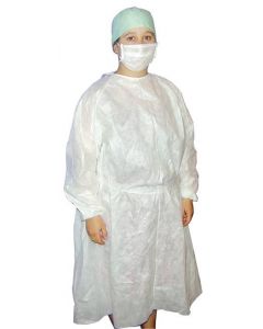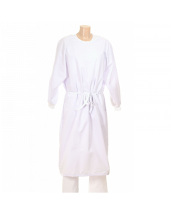Blouse visiteur en PP NON TISSE 25g/m2, BLANCHES Fermeture Scratch cou et liens dans le dos, longueur 115cm, poignets JERSEY
