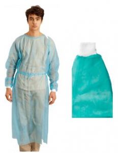 Blouse médicale Imperméable à usage unique 40grs/m2 avec lien, Bleu clair, sachet de 10