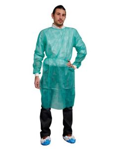Blouse de protection / isolation FM MEDICAL à UU verte PP 25gr/m², poignets jersey, sachet de 10
